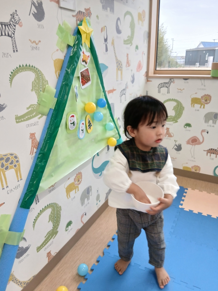 クリスマスツリー🎄の的あてでは、ボールを沢山つけて楽しむ子も💡