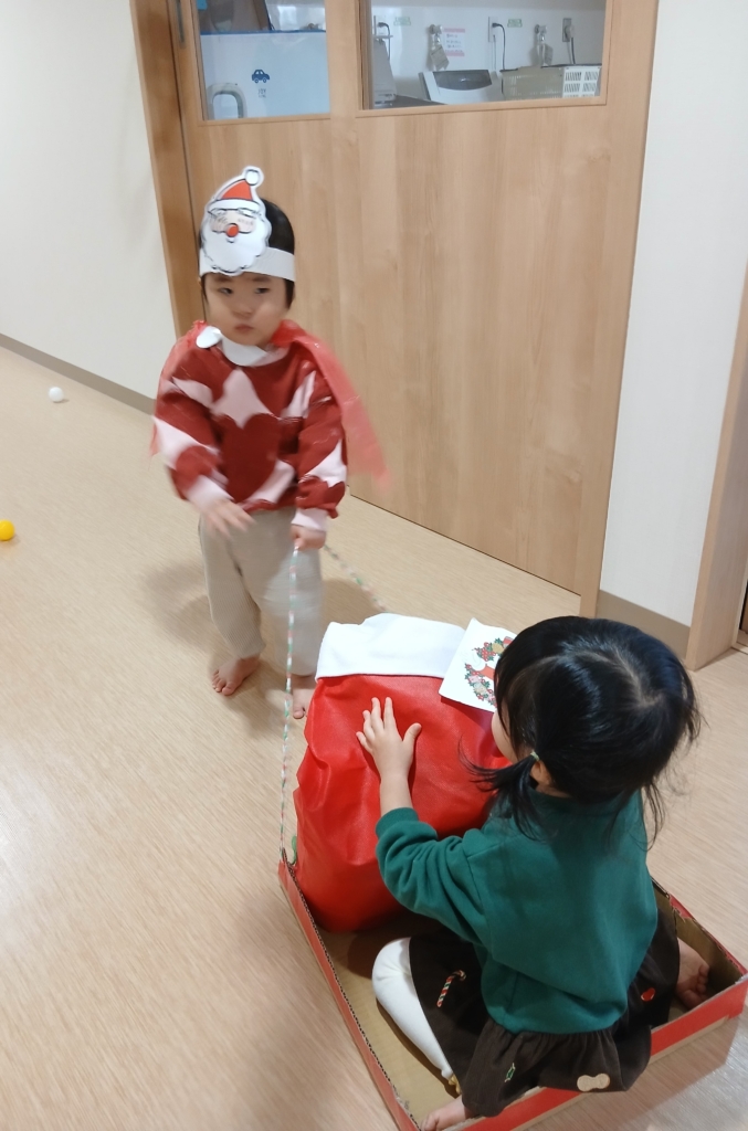 午前のおやつを食べた後はクリスマスのコーナー遊びで遊びました(*^^*)