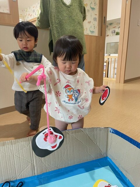 釣りの飾りもくっつけてオリジナルツリーを作っている子もいて、思い思いに遊びを楽しんでいましたよ(^^)/