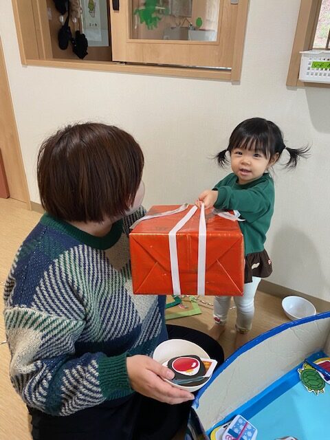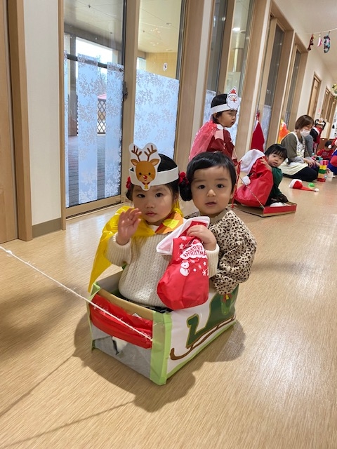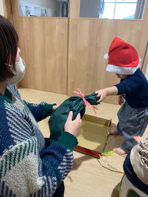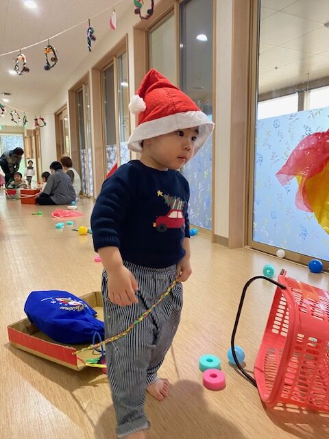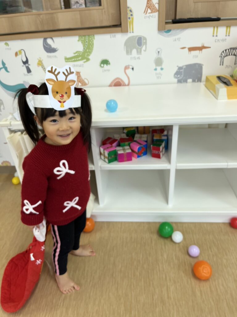 保育室や廊下にはクリスマスソング♬も流れ、朝からクリスマスの楽しい雰囲気に包まれていました。