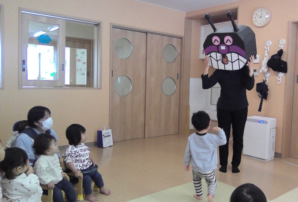 と、パンチでバイキンマンからみんなを守ろうと小さなヒーローになってくれました(笑)