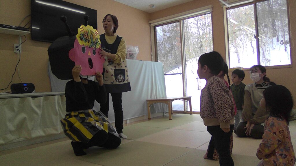 鬼に変身した子ども達は、あちらこちらのお部屋に出向き・・・みんなの森どんぐり保育園の鬼退治に一緒に参加してくれましたよ👹