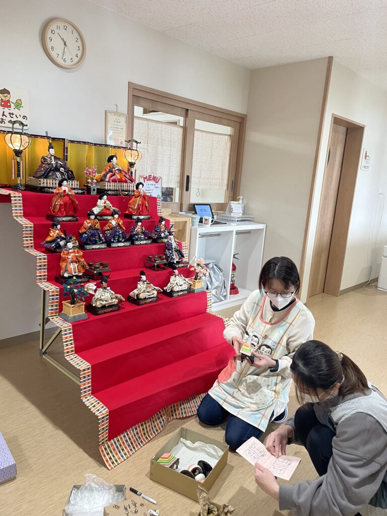 と、話し合いながらひな人形を飾っていき・・・