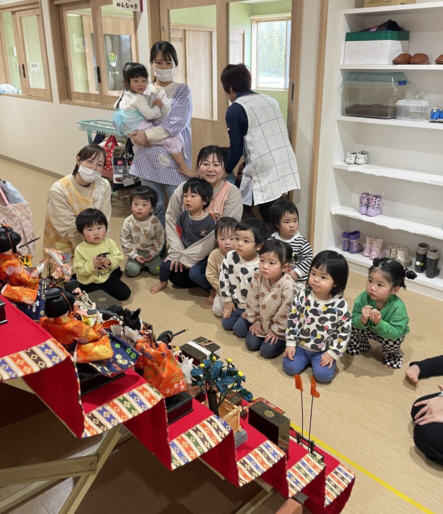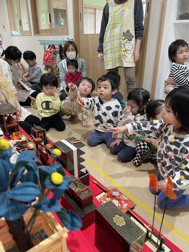保護者のみなさんも是非、登園や降園の際にお子さんと一緒にひな人形を見てみてくださいね(*^^*)
