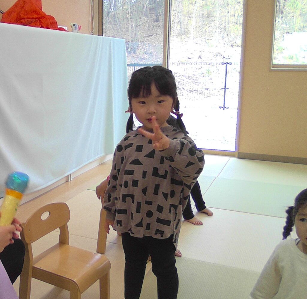 子どもたちもオオカミを起こさないように・・「シ~!!」と静かに見守りました。みんなすっかりこのお話に引き込まれていきます🍃