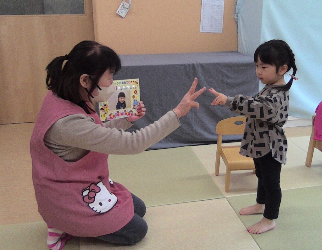 K君の手をよ~く見てみてください😆(右の写真) “2歳”の指になっているんですよ♡
