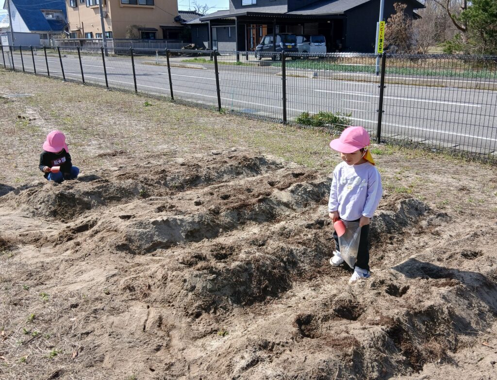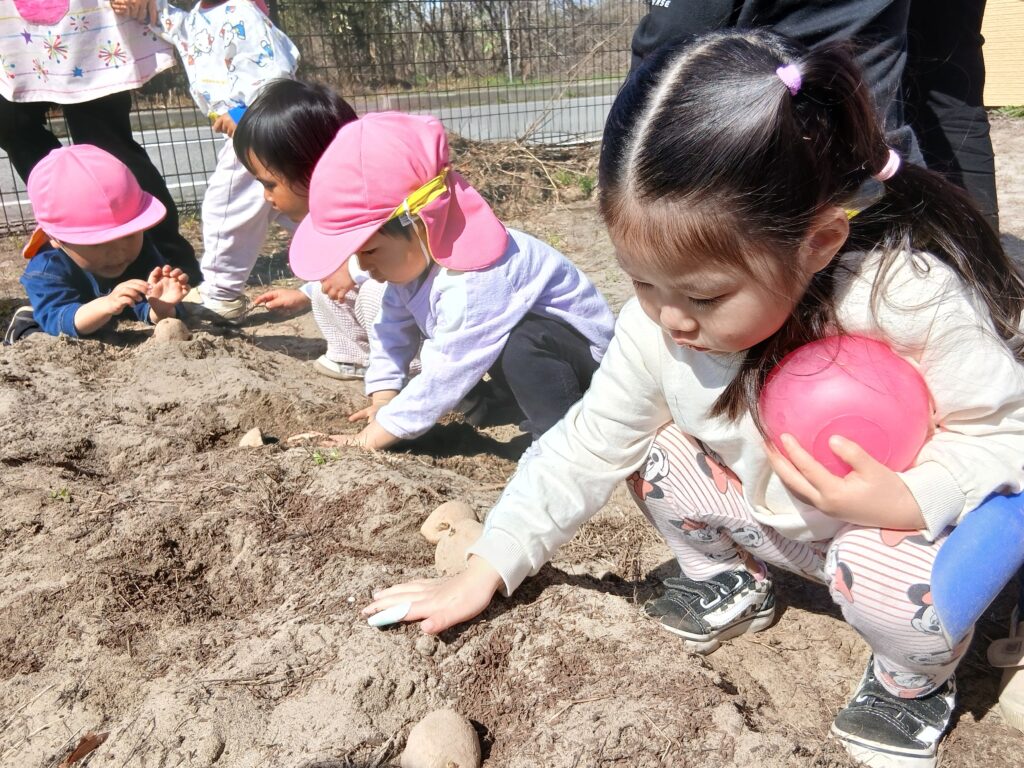 今年は、ぽにークラス(2歳児)で、ジャガイモを植えることにしました。ジャガイモの種類も2種類を選び、芋の種類によって、どんな食感があるのか?じゃがいもはどんなお料理に変身するのか?・・・子ども達はどんな発見をするのか?・・・など楽しんでいきたいと思います!!!