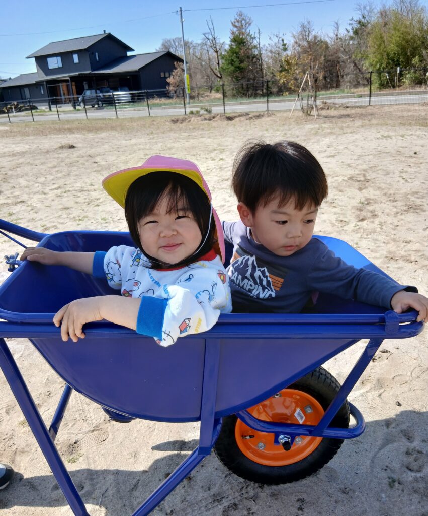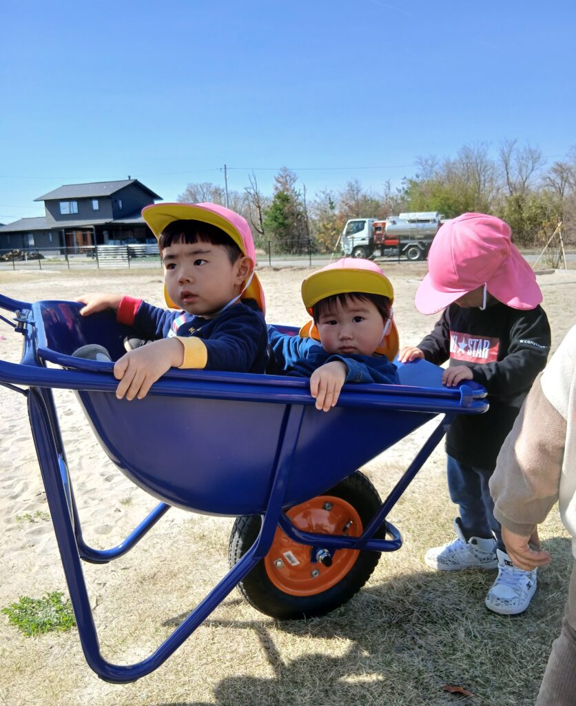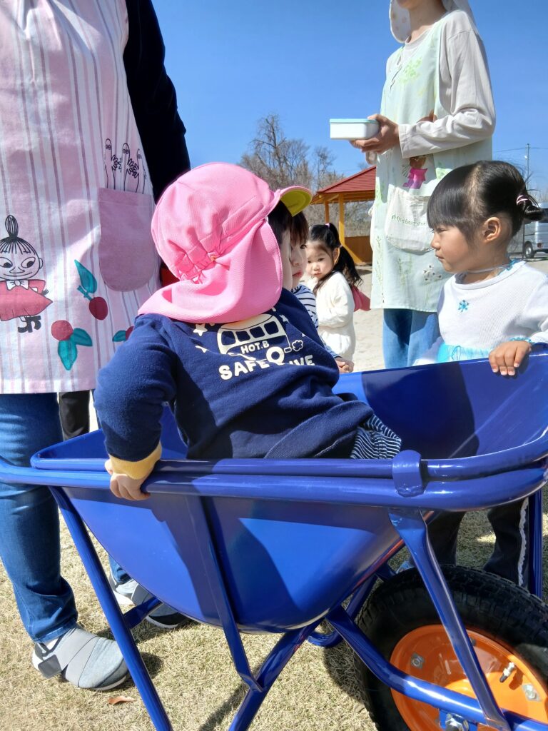 「乗ってみる~?」主任のK子先生。張り切って一輪車タクシーの運転手さんになってくれました。(子どもの頃、一輪車に乗せてもらって遊んだよね~(笑)を思い出しながら・・年代がわかりますね~??💦💦)