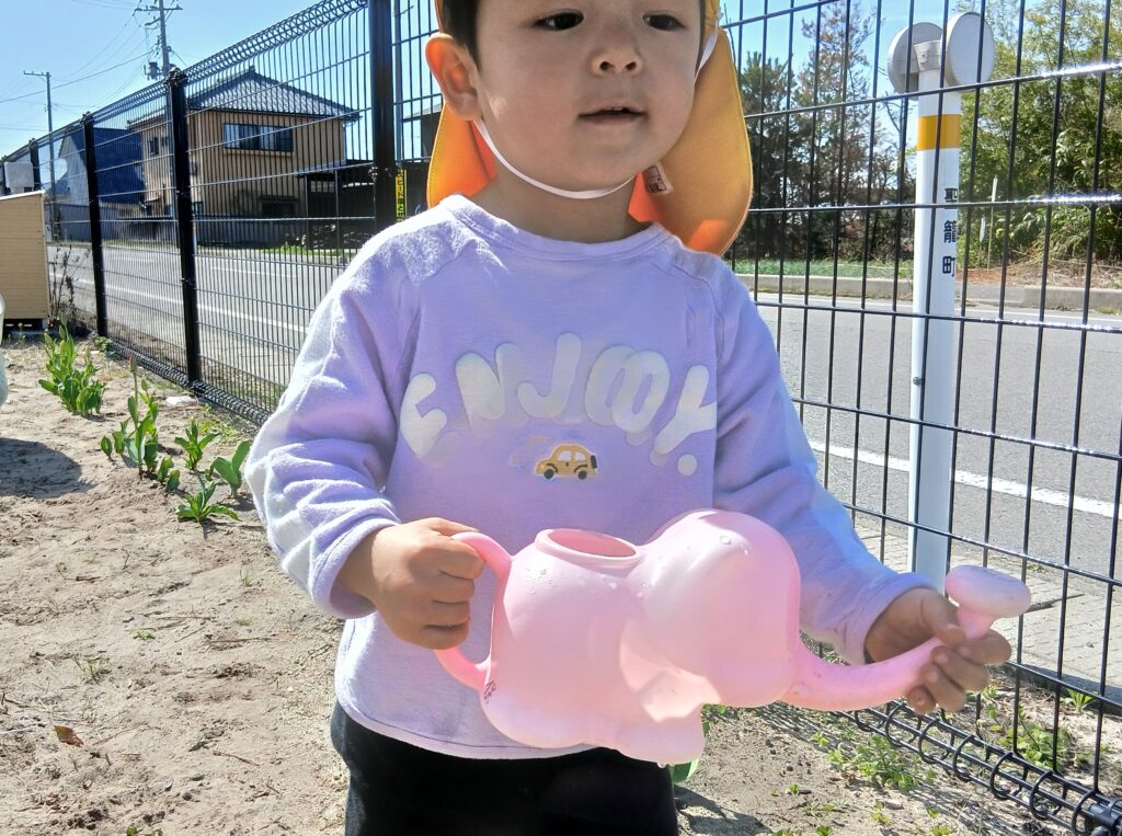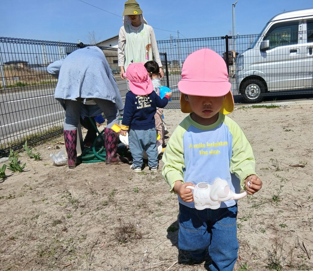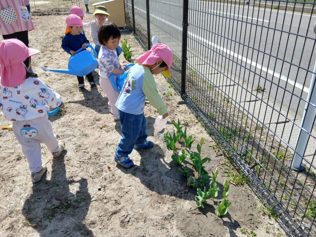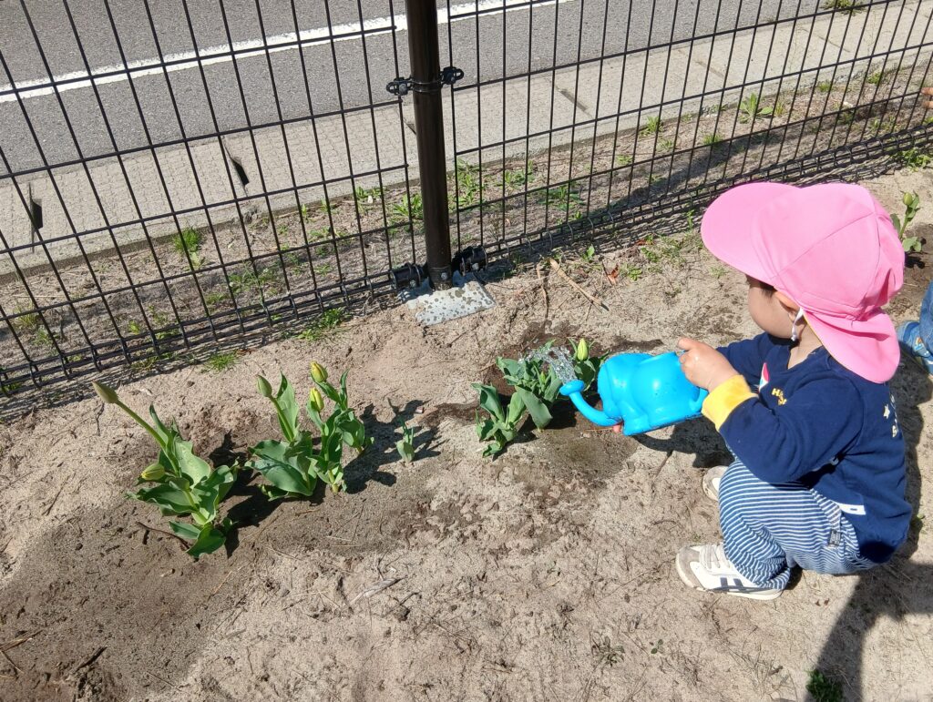 お芋にた~っぷり水をあげて・・・チュ~リップにもお水をあげる子ども達🌷