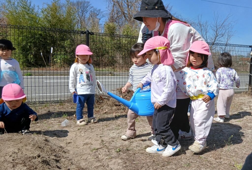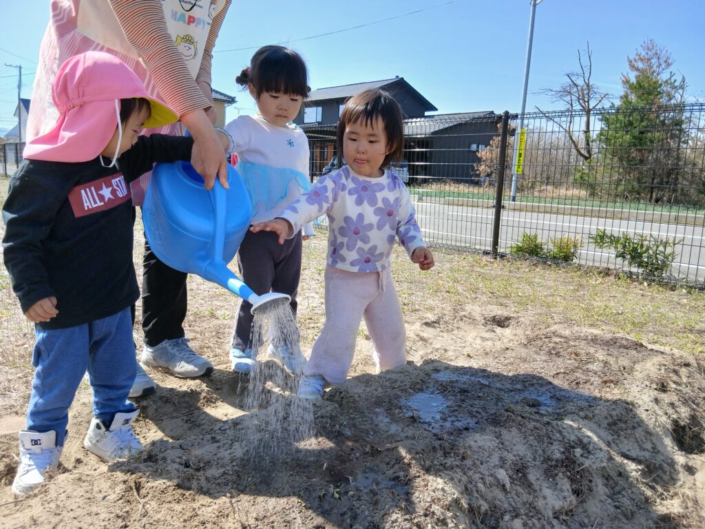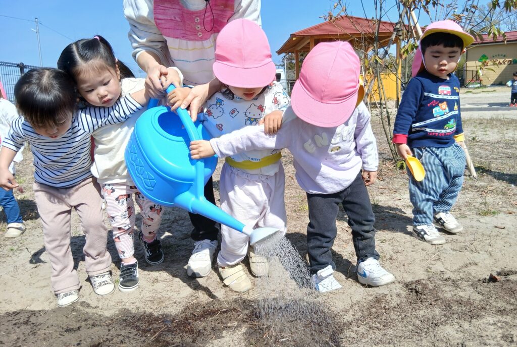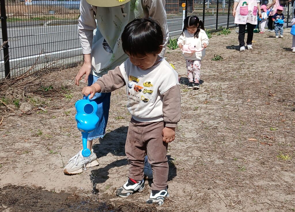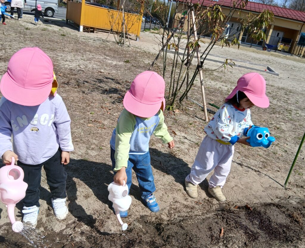 お芋にた~っぷり水をあげて・・・チュ~リップにもお水をあげる子ども達🌷